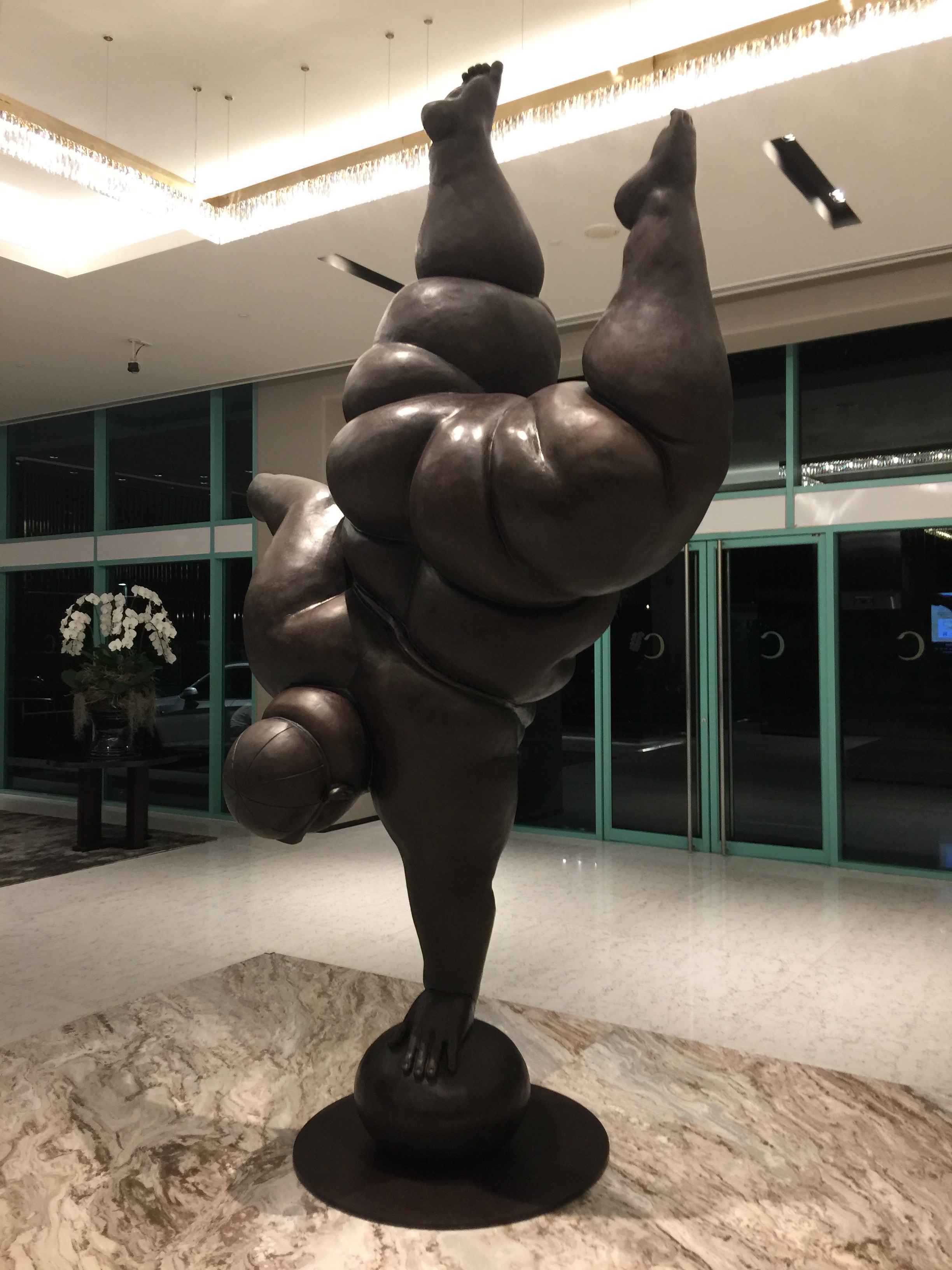 - Botero-Plastik vor dem Pool